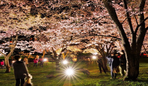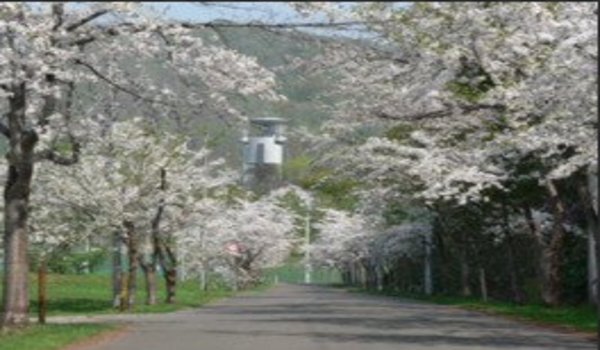 敷地面積100万平方メートルの公園には、蝦夷山桜やソメイヨシノなどが約1800本植えられている。 展望台へと向かう途中には、ところどころに桜のトンネルが形成され、道行く人を楽しませてくれる。