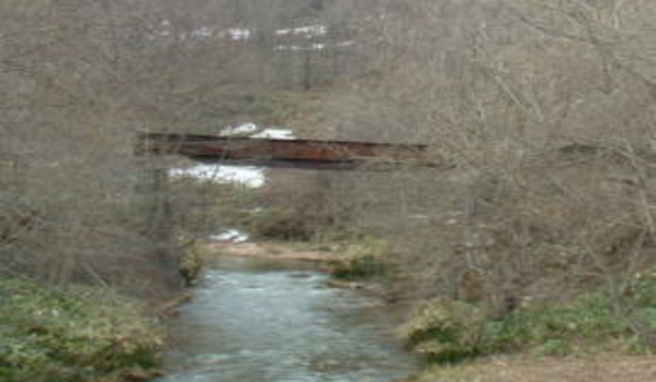 ないえ温泉前の橋から見える、炭鉱時代のただ一つの名残、列車鉄橋の橋跡。